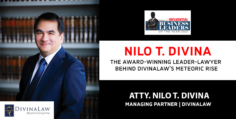 “A leader can come from anywhere, but the wisest of them are lawyers.” This is no dogma or doctrine, but a fact we can all agree on. Leaders, coming from legal backgrounds, have shown multiple examples of dispensing ‘Practical Wisdom,’ making them ‘Practical Visionaries.’ They are not adjudged by where they advise but where they decide to make a change. Putting it in another way, they are driving the concept of ‘Lawyers as leaders.’ In this issue, “Influential Business Leaders of the Year 2021,” we proudly feature Atty. Nilo T. Divina, Managing partner of DivinaLaw. His zeal for law and extensive experience in various practice areas has led to his firm’s booming in a brief span, cultivating it as one of the Philippines’ leading law firms.